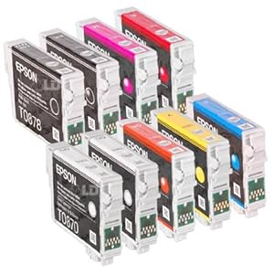 9 genuine Epson Hi-Definition ink cartridge set for epson Stylus R1900 R-1900 photo inkjet printer. 9 original individual UltraChromeTM """"Hi-Gloss® 2"""" ink-jet cartridges included: T087120, T087220, T087320, T087420, T087020, T087820, T087720, T087920 and an extra T087020...
