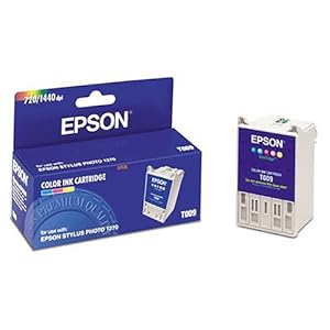 Results depend on lighting conditions, humidity, color intensity, color range, and print media. Water-resistant prints are produced using genuine Epson ink cartridges and Epson premium glossy photo papers or Epson photo paper. The print capacity is 330 pages (5 percent coverage for each color at 360 dpi, A4). This cartridge was formerly referred to by product code T009.