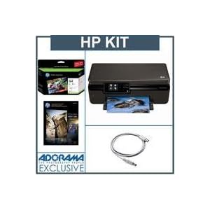 Hewlett-Packard - HP Photosmart 5510 e-All-in-One Inkjet Printer B111a - Bundle - with HP 564 Series 3-ink Photo Value Pack, 85 prints, HP Glossy Photo Quality Paper, 8.5x11", 25 Sheets, Adorama USB 2.0 A to B Cable, 6' Long