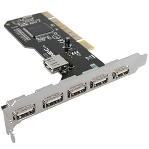 PCI USB 2.0 Controller Card (5 External Ports and 1 Internal Port sharing with an external port).Using NEC D720101 PCI to USB 2.0 Host Controller chip.Specification:Compliant with OHCI for USB 1.0a and EHCI for USB Rev.095;Compliant with Universal Serial Bus Specification Revision 2.0;Supports high-speed (480Mbps), full-speed (12 Mbps) and low-speed (1.5Mbps) data transfer rate;32-bit 33MHz host interface compliant to PCI Specification release 2.2;Supports up to 127 devices;Support device hot swap and wake-up;Supports PCI-Bus Power Management Interface Specification release 1.1;Provide up to 5 independent type 'A' downstream ports for USB device connections;Supports all USB-compliant devices;System Requirement;PC computer with one 32-bit PCI slot;MS Windows 98SE / Me / 2000 / XP / Vista.Package Included: PCI USB 2.0 controller card, User's Manual.Support USB Devices: Digital Camera, Printer, Scanner, Keyboard, Mouse, Speaker, Modem, USB Hub, Game PAD, MP3 Player, USB Reader, PDA, Plotter, Removal Storage Bay (HDD, CDROM, CDRW).Manufacturer Part Number: SYBA SD-NECU2-5E1I.