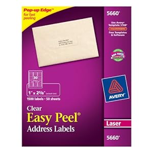 Avery Easy Peel Clear Mailing Labels for Laser Printers, 1 x 2.62 Inches, Box of 1500 (5660)