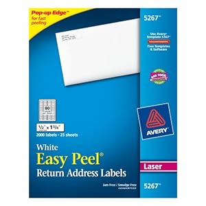 Avery Easy Peel Return Address Labels for Laser Printers, 0.5 x 1.75 Inches, White, Pack of 2000 (05267)